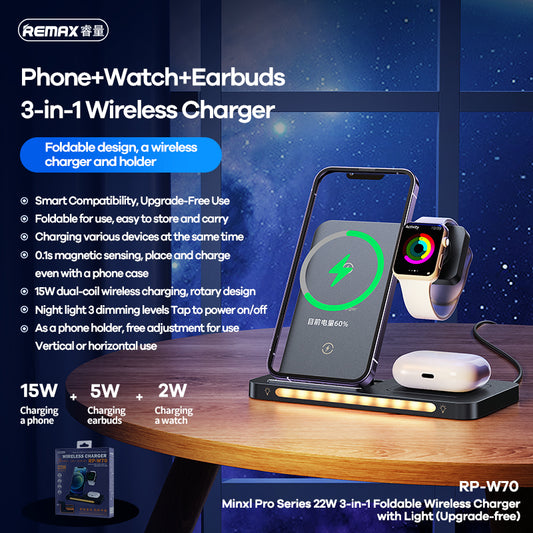 REMAX Minxl Pro Series 22W 3-in-1 Foldable Wireless Charger with Light - RP-W70