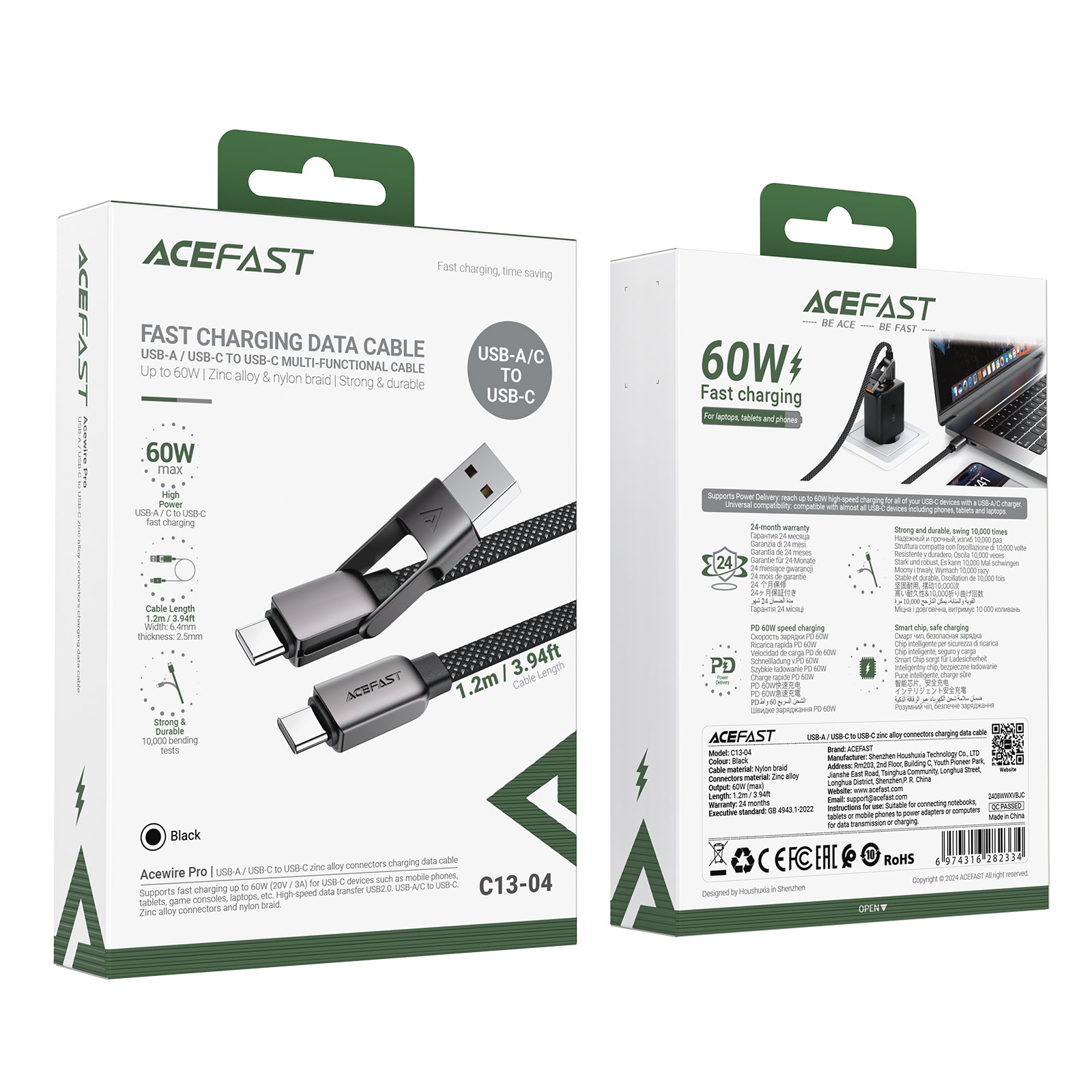 ACEFAST 60W 2-in-1 USB/Type-C to Type-C Braided Charging Cable - C13-04